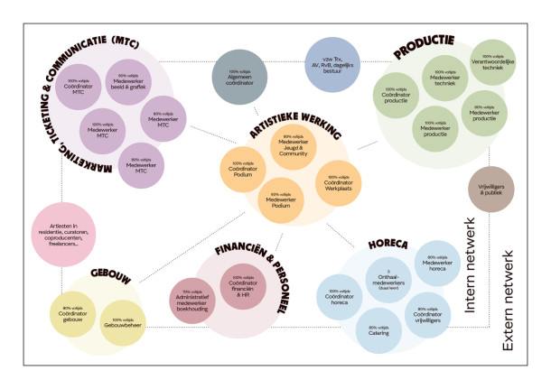 A core team of coordinators takes the lead but can be supplemented by any member of the team who wants to discuss a project or agenda item. The working method is project-based.